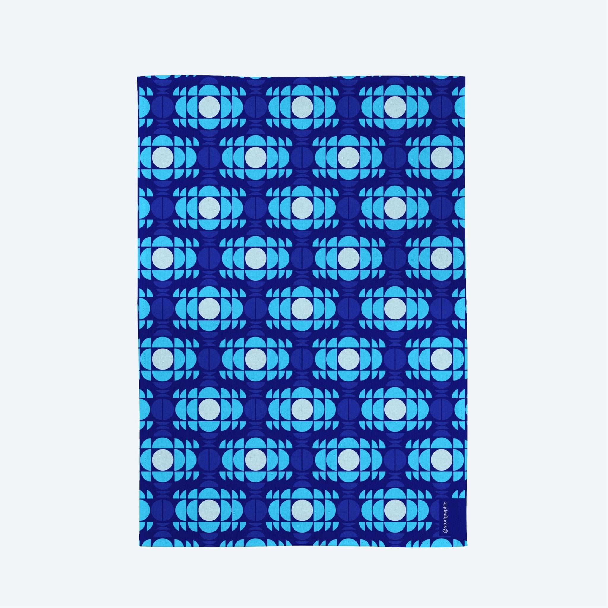 ‘Boho Blue', graphically vibrant tea towel from our popular Seventies Series new colour editions range.