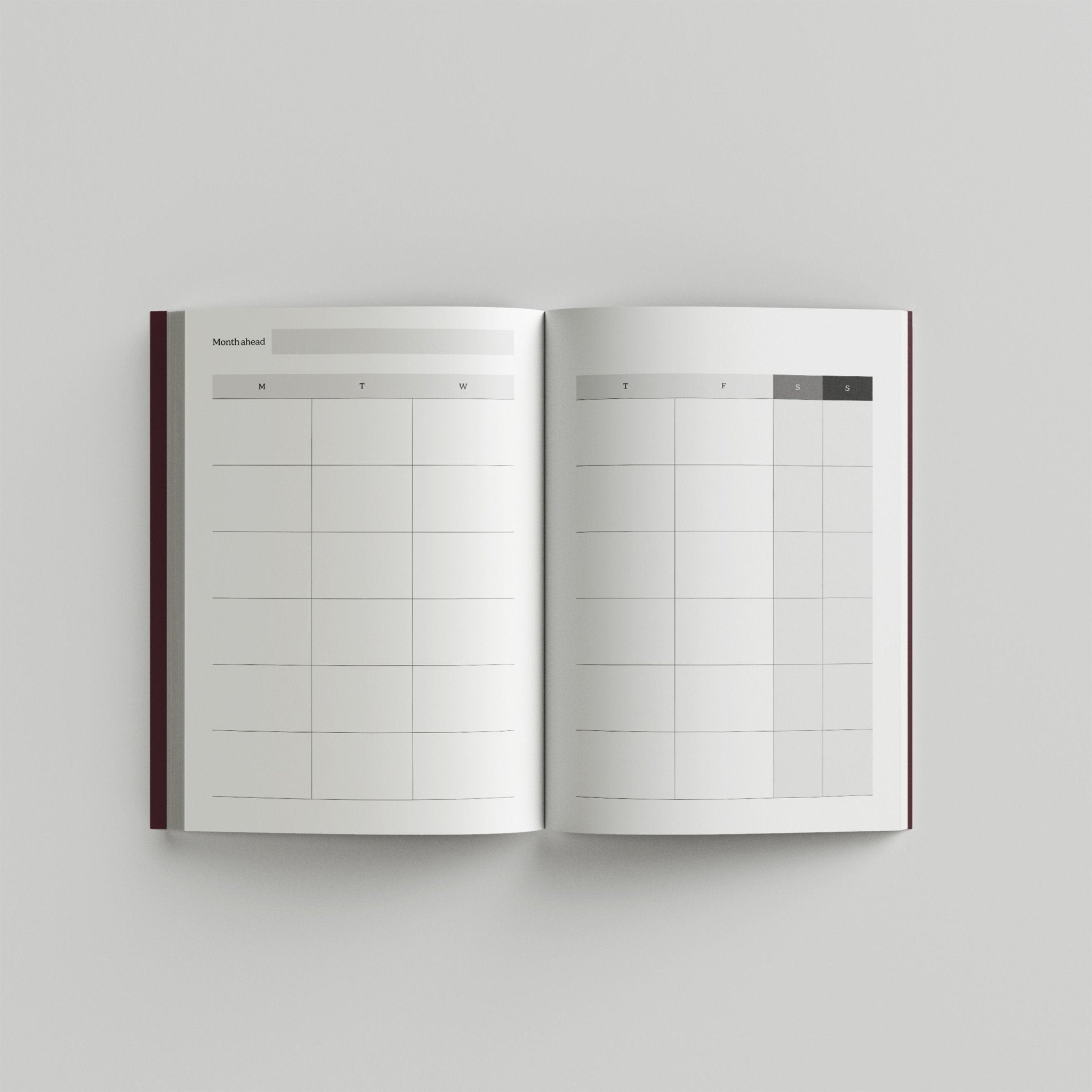 - Undated 12-month calendar to the end section of the journal