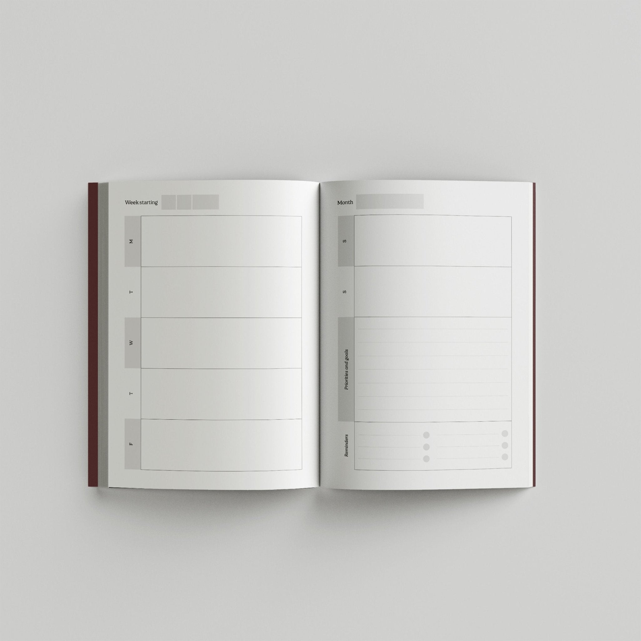 - Month and week-view double-page spreads